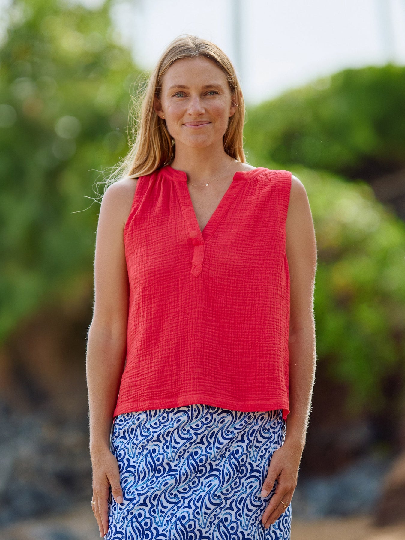 Light, breathable, and impossibly soft—this sleeveless update to our bestselling Popover Top is made for summer ease. Double-layered cotton gauze gives it a breezy, barely-there feel that’s polished enough to wear out and comfortable enough to live in.