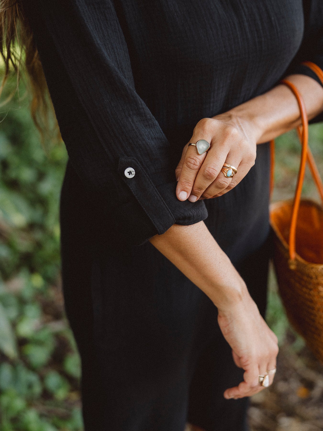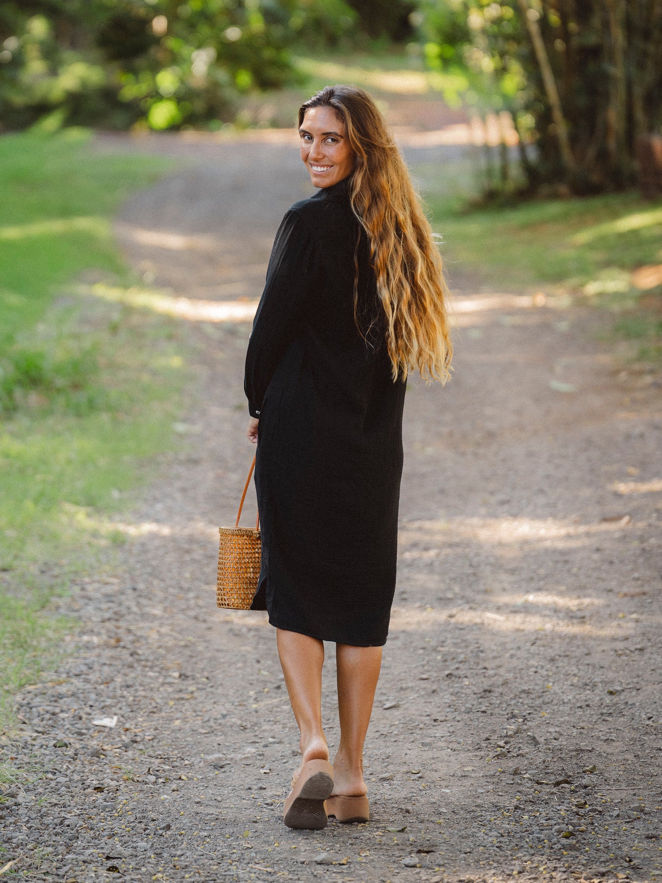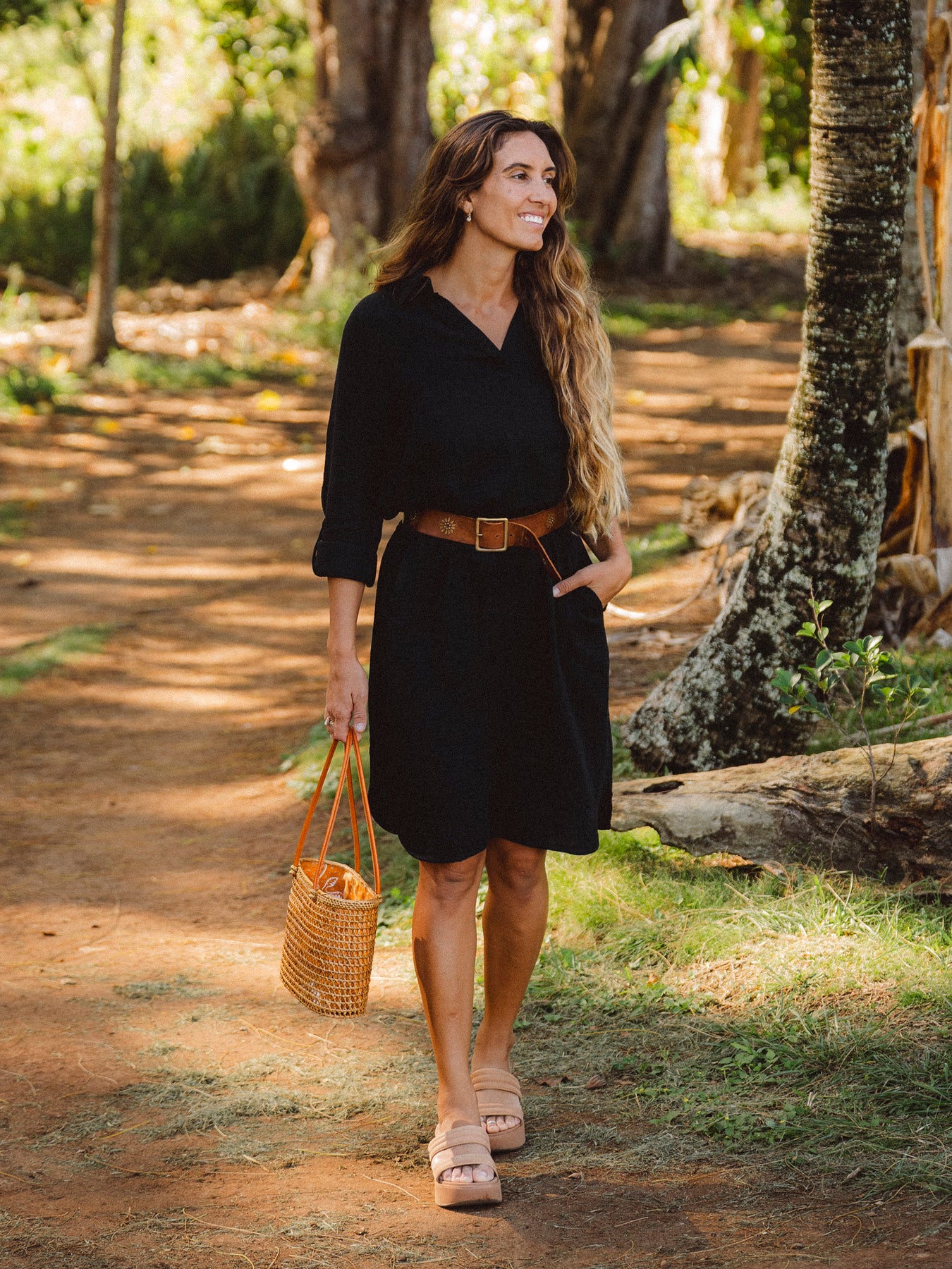 The Travel Dress was designed to be relaxed and comfortable with a slightly boxy fit that is breezy, cool, and flattering. If you prefer a closer to body fit we recommend sizing down. Want more sizing information? Check out our model sizing page!