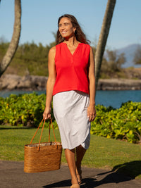 Our improved bamboo blend fabric offers a luxe feel and elegantly drapes without revealing any unwanted lines underneath. Plus, we've got your back (and belly) covered with the perfect length to avoid any unexpected exposure. We recommend ordering your usual top size. If you feel you may be between sizes it is best to size up. Want more sizing information? Check out our model sizing page!