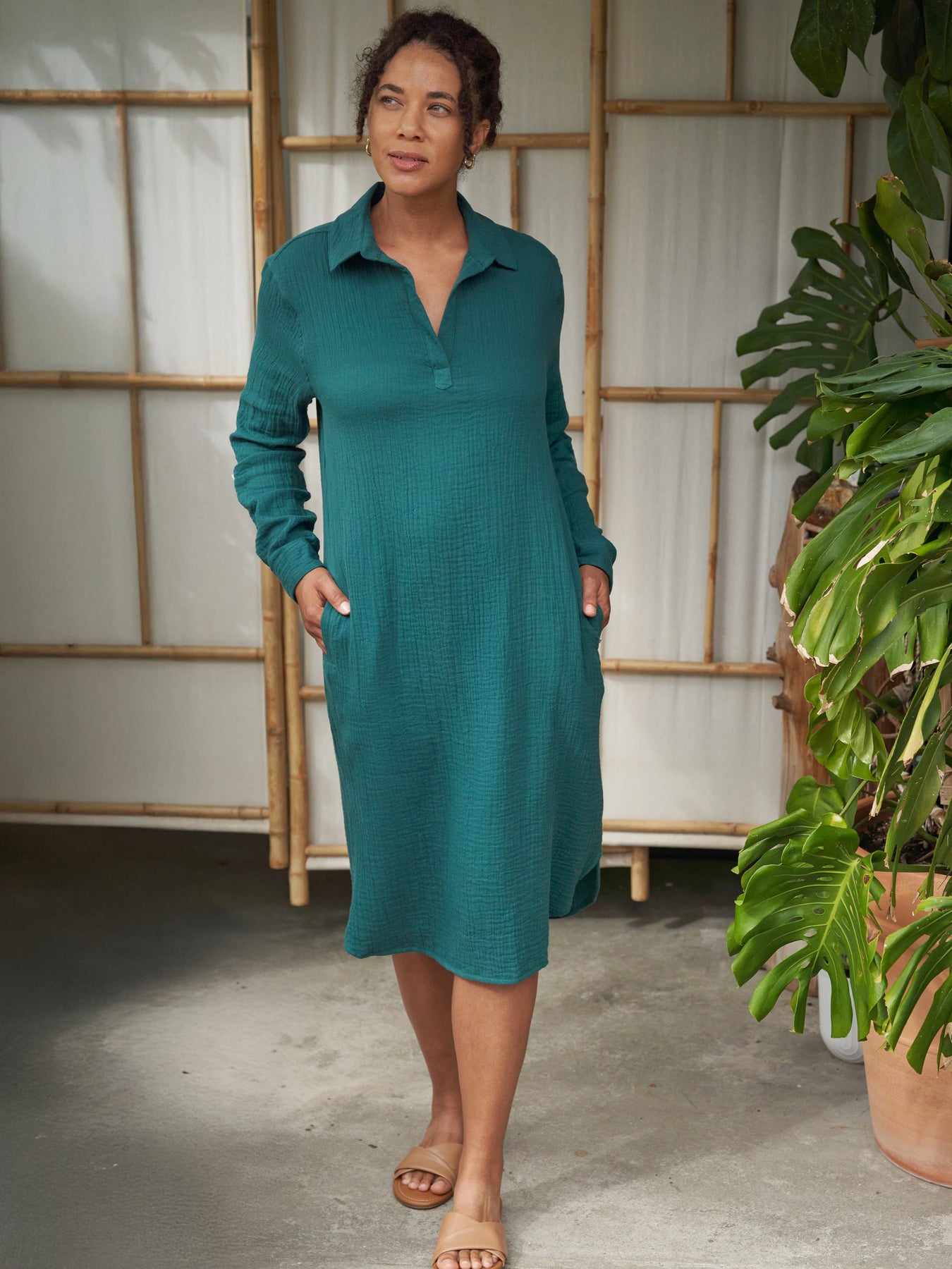 Made from double-layered 100% cotton gauze, this longer dress is lightweight, breathable, and built for easy days. The extended hemline adds flow and versatility—perfect for beach strolls, city exploring, or dinner al fresco. With its breezy, boxy fit and ultra-soft texture, it delivers comfort without compromising on style. A true travel essential you'll reach for again and again.