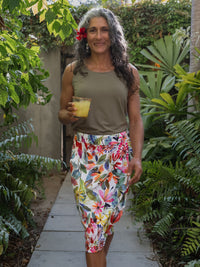 Our improved bamboo blend fabric offers a luxe feel and elegantly drapes without revealing any unwanted lines underneath. Plus, we've got your back (and belly) covered with the perfect length to avoid any unexpected exposure. We recommend ordering your usual top size. If you feel you may be between sizes it is best to size up. Want more sizing information? Check out our model sizing page!